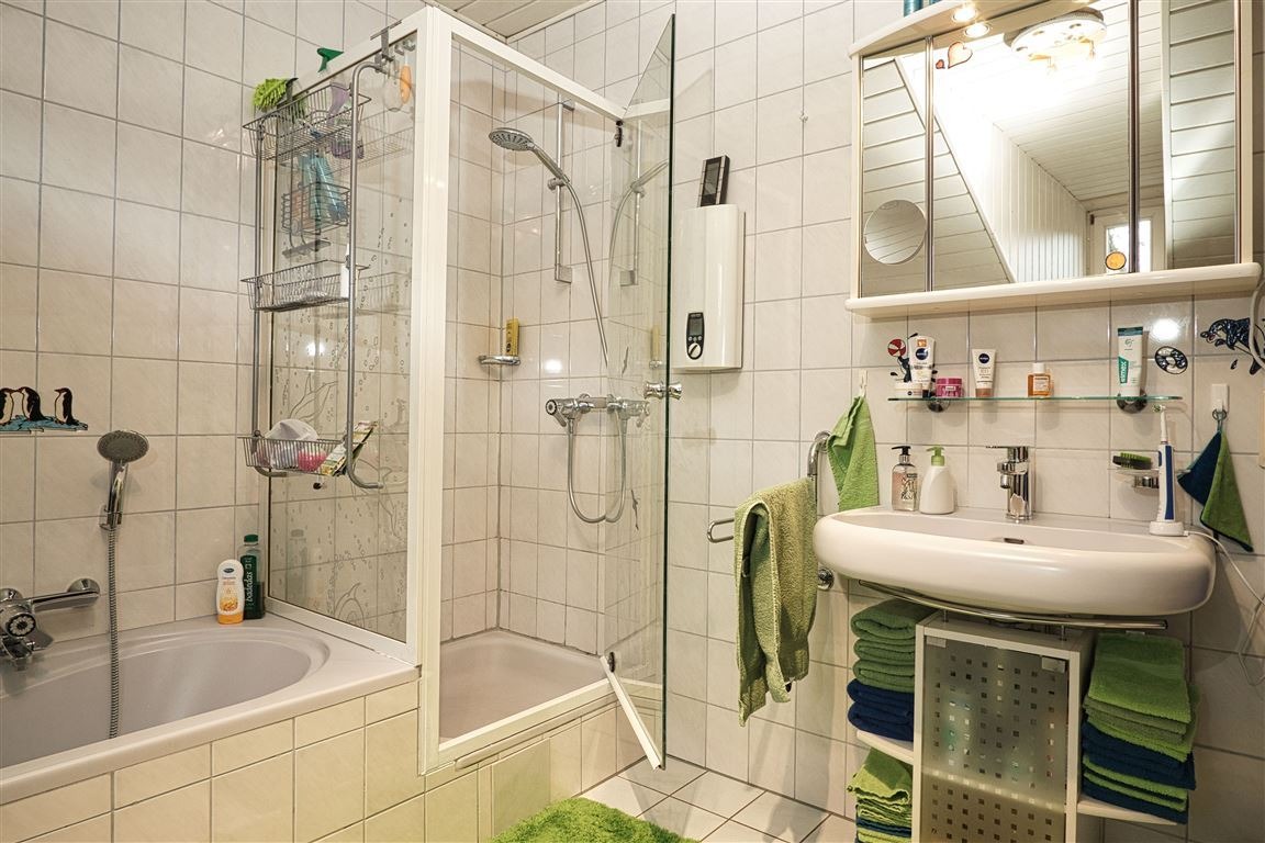 - Badausstattung: Dusche, Badewanne, Fenster