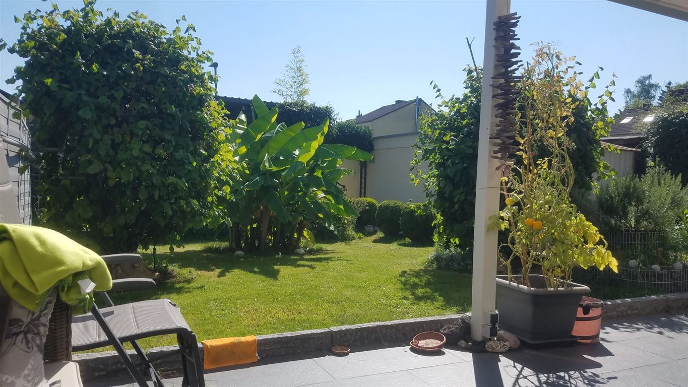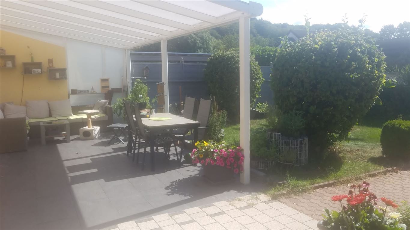 Der Garten, ausgerichtet gen Süd-Westen, ist ein wirkliches Paradies: sichtgeschützt und ruhig gelegen. Der Platz unter der Terrassenüberdachung bietet Schutz ….. für den Fall eines Regenschauers.